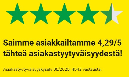 - ✅ Hyvää: Omassa asiakastyytyväisyyskyselyssä Cheap Energy sai 4,3/5,0 tähteä, 2025, yli 4500 vastausta