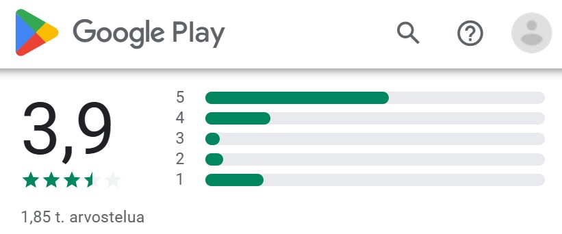 Oma Helen sovellus lähes 4/5 tähteä Google Play Storessa